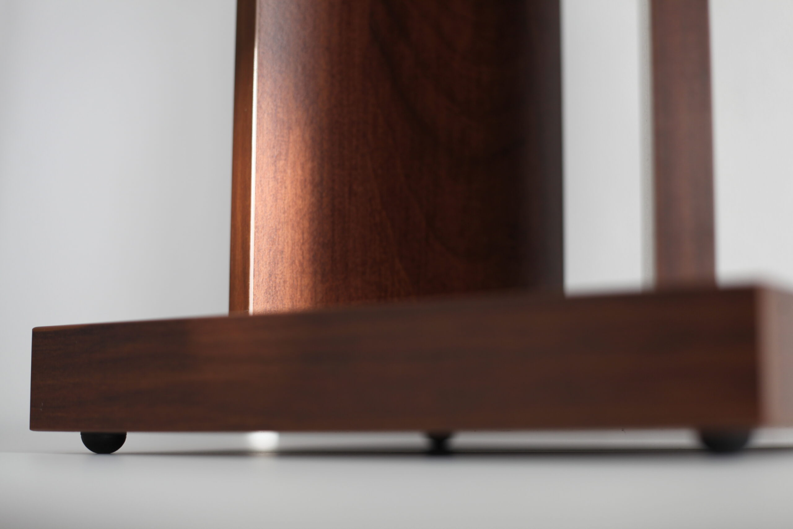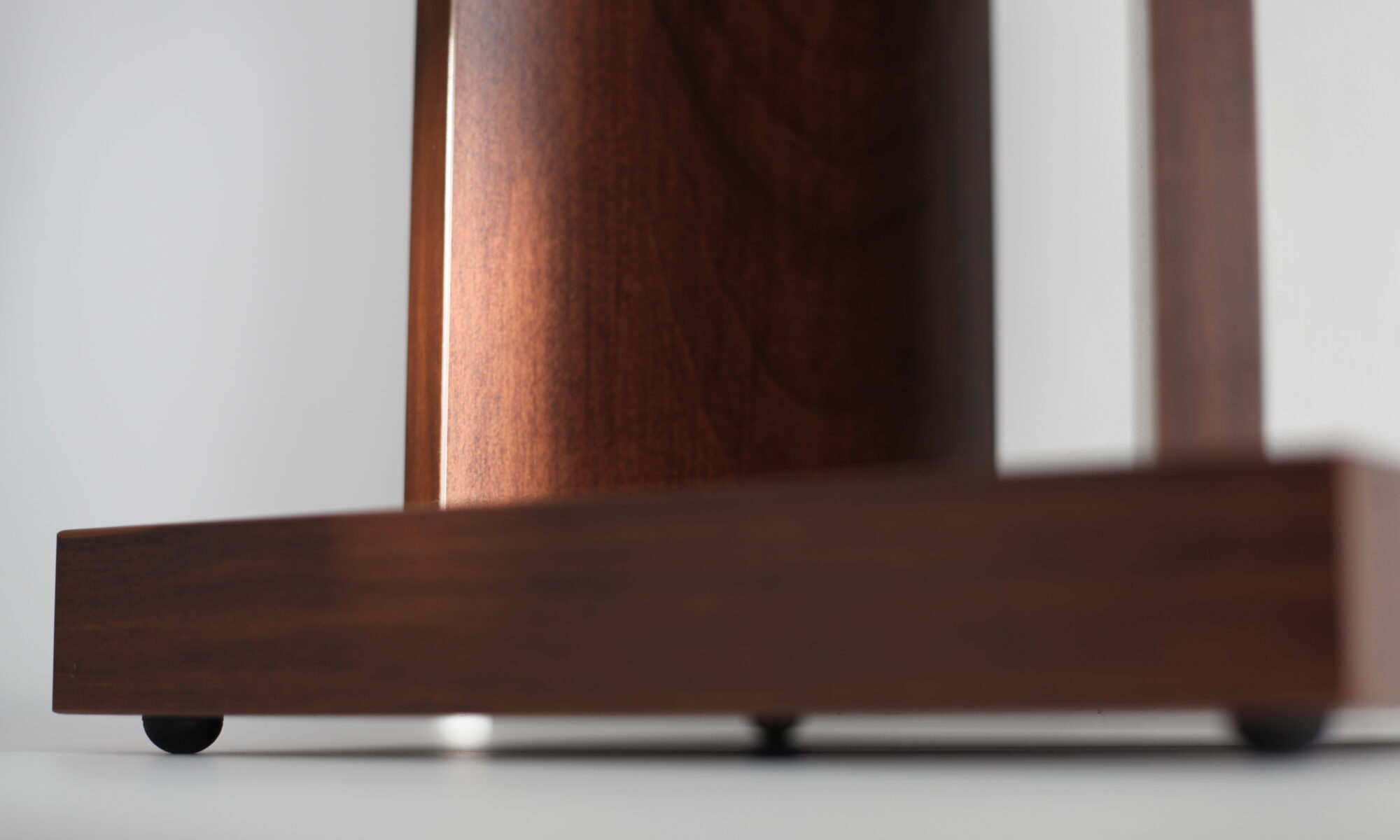W statywie wykorzystano antyrezonansową konstrukcję z wysokiej jakości płyty meblowej. Struktura tego materiału zdecydowanie słabiej przenosi drgania niż lite drewno czy puste wewnątrz metalowe rurki, które w statywach potrafią być dla dźwięku falowodem, wzbudzając się, dzwoniąc i drgając.